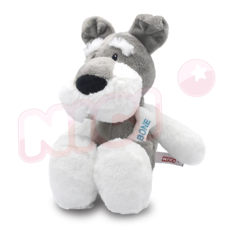 Der kleine Plüschknochen befindet sich in einer „Bauchtasche“ und ist mit einem kleinen Band darin befestigt.